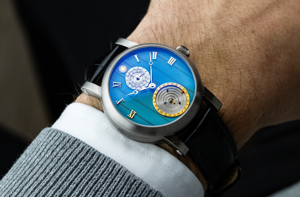 In 1974, Christiaan van der Klaauw established his own atelier, unveiling his first clock adorned with astronomical complications. He received in 1989 an honorable membership of the Swiss Académie Horlogère des Créateurs Indépendants (AHCI).