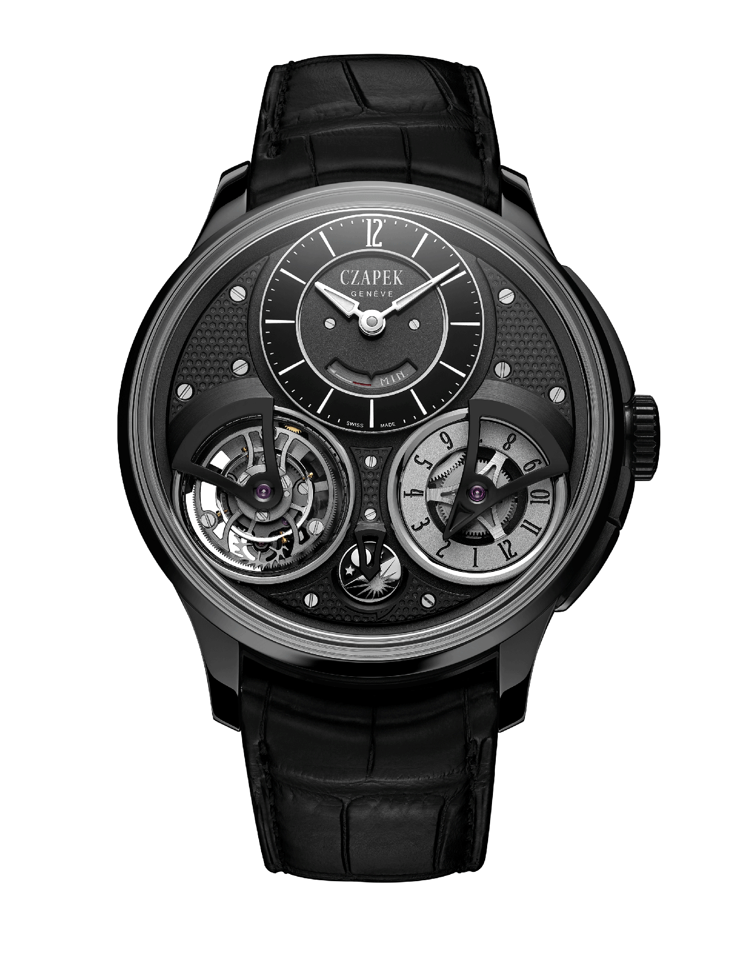 The Place Vendôme Tourbillon Suspendu collection is named after the Parisian square where François Czapek opened his boutique in the mid-19th Century. The watch features a one-minute suspended tourbillon, a second time zone, a day/night disk and a power reserve indicator.