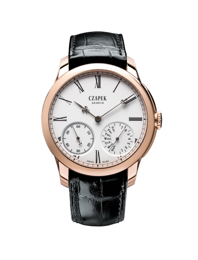 The first collection to herald the renaissance of Czapek & Cie is called ‘Quai des Bergues’. It pays tribute to the location where François Czapek founded the company in 1845.The collection features 2 distinct cases in 5 different materials: white gold, rose gold, platinum, titanium or steel.