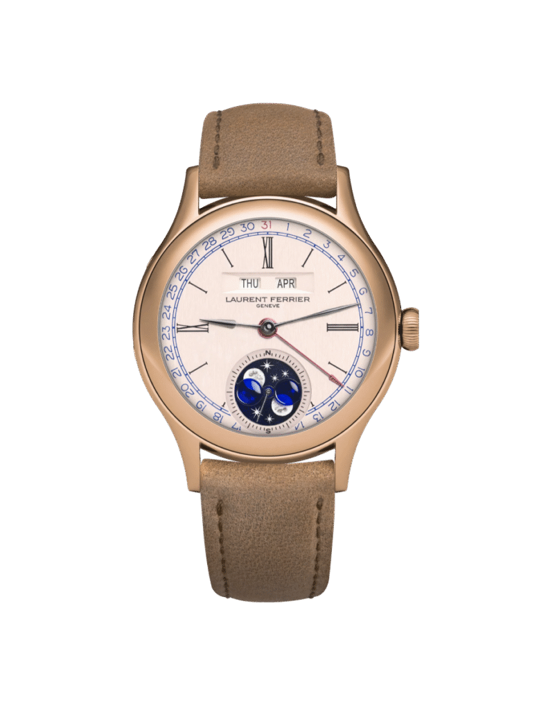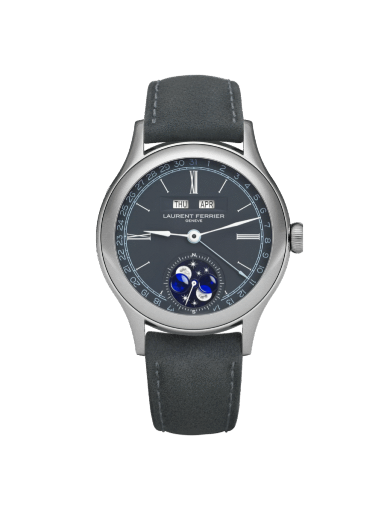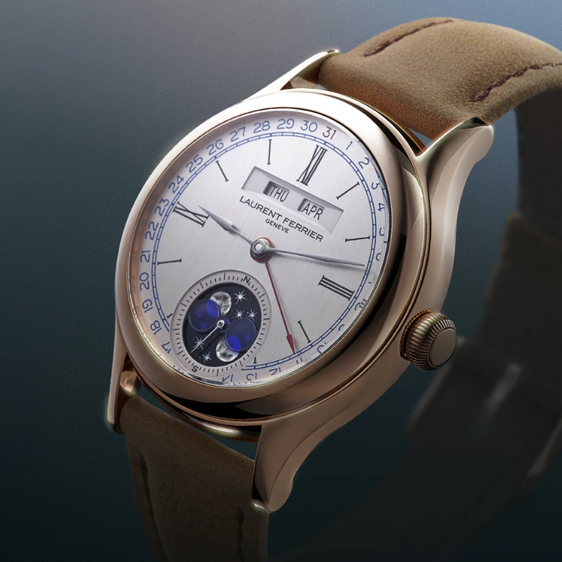 The Classic Moon by Laurent Ferrier unites meticulous design with the Maison’s signature craftsmanship. An elegant annual calendar is harmoniously paired with the poetic moon phase complication—marking a first in the brand’s history.